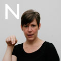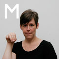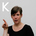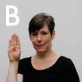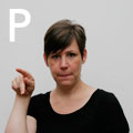 geschlossene Hand vom Körper weg, Zeige- und Mittelfinger zusammen nach oben, Daumen auf der Handfläche, kurze Bewegung der Hand nach unten |