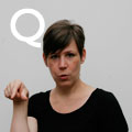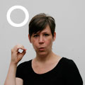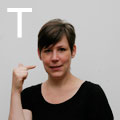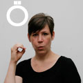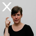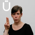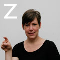 geschlossen Hand vom Körper weg, Zeigefinger nach oben schreibt ein 'Z' in die Luft (Zick-Zack-Bewegung) |