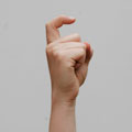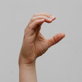 Daumen und restliche Finger bildet einen offenen Halbkreis |