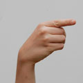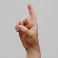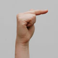 geschlossene Hand nach links, Zeigefinger nach oben, aber angewinkelt |