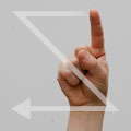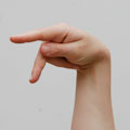 geschlossene Hand nach links, Zeigefinger nach links gestreckt, Daumen auf dem Zeigefinger nach vorn |