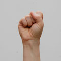 geschlossene Faust vom Körper weg, Daumen vor den Fingern |